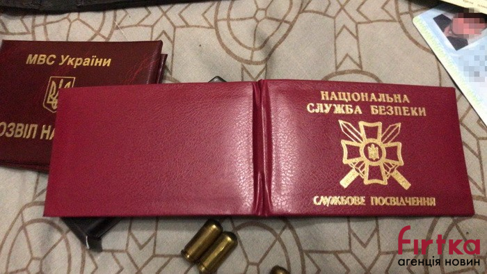 Під час санкціонованих слідчих дій правоохоронці виявили підроблене службове посвідчення співробітника СБУ, пістолет Макарова, перероблений для відстрілу гумових куль, та набої до нього.