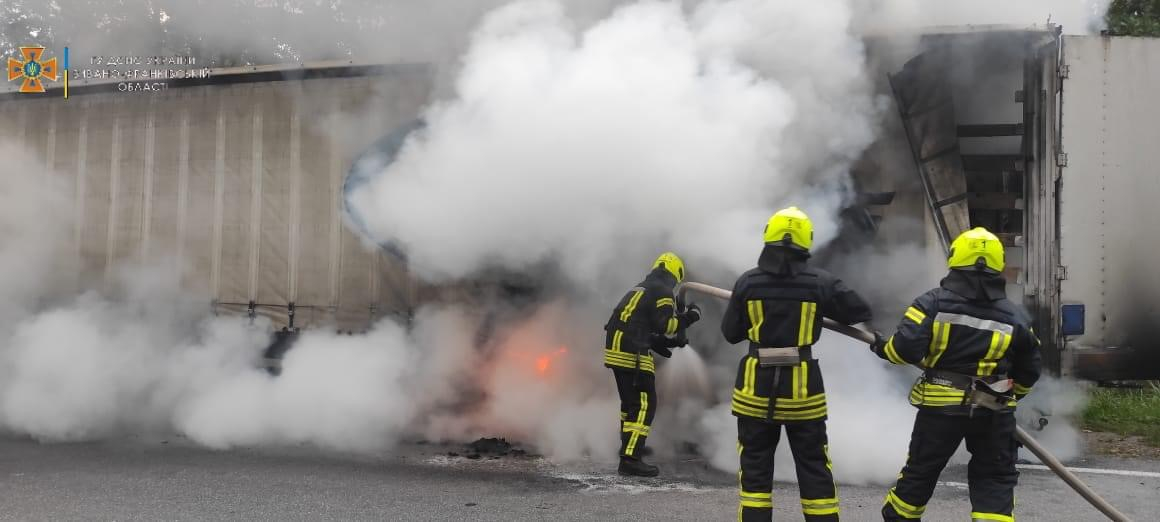 Вогнеборці ліквідували пожежу причепа вантажного автомобіля на автодорозі в селі Черніїв.