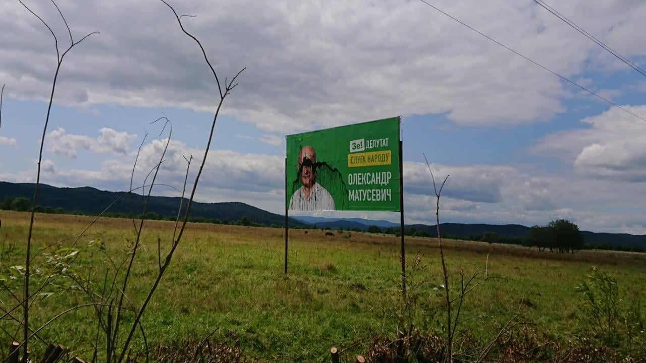 Невідомі понищили рекламні щити кандидата в народні депутати по 86 виборчому округу представника політичної партії «Слуга Народу» Олександра Матусевича.