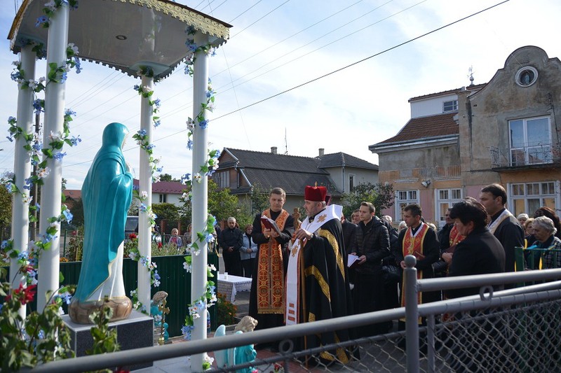 У Коломиї по вулиці Івана Франка здійснили посвячення каплички із статуєю Матері Божої у пам’ять воїнам, які загинули під час АТО.