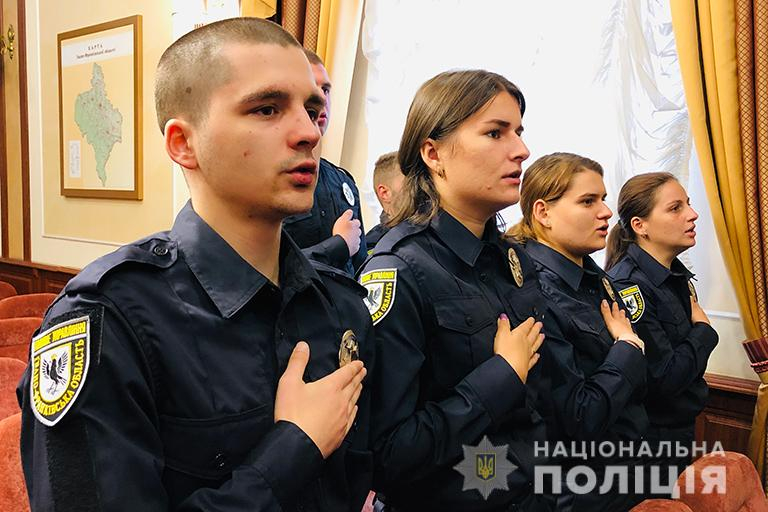 У Головному управлінні Національної поліції в Івано-Франківській області відбулась урочиста присяга молодих поліцейських, які пройшли відбір та вирушають на навчання до поліцейської академії у Рівному.