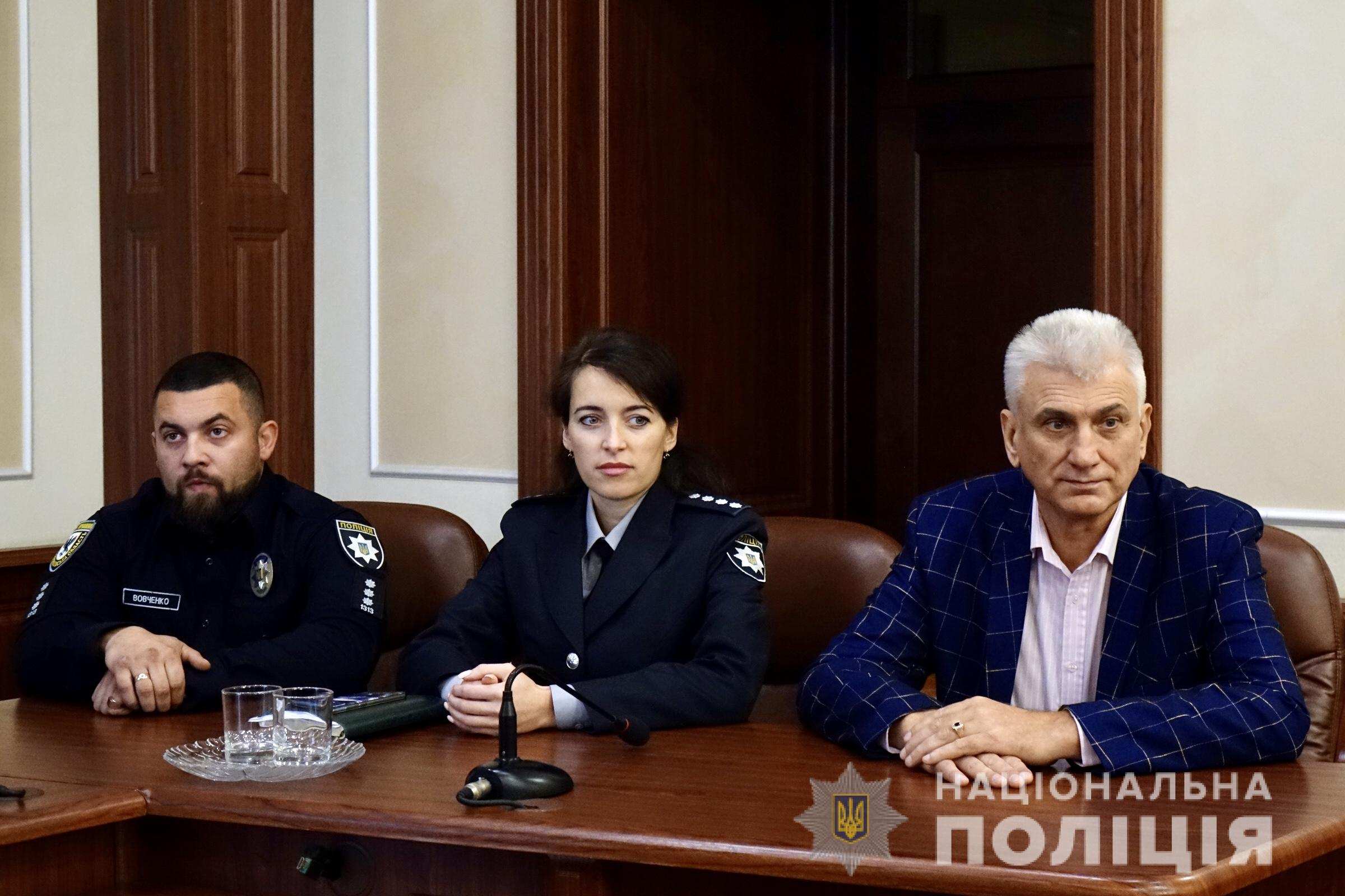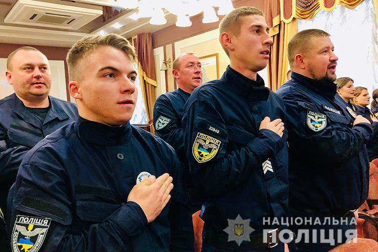 На урочисті заходи також завітали поліцейські-новобранці роти поліції особливого призначення, котрі успішно завершили навчання на курсах первинної професійної підготовки поліцейських у Львівському державному університеті внутрішніх справ та вчора урочисто склали присягу на вірність українському народові. Уже сьогодні вони приступають до виконання службових обов’язків.