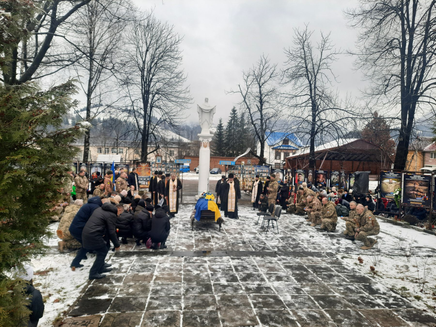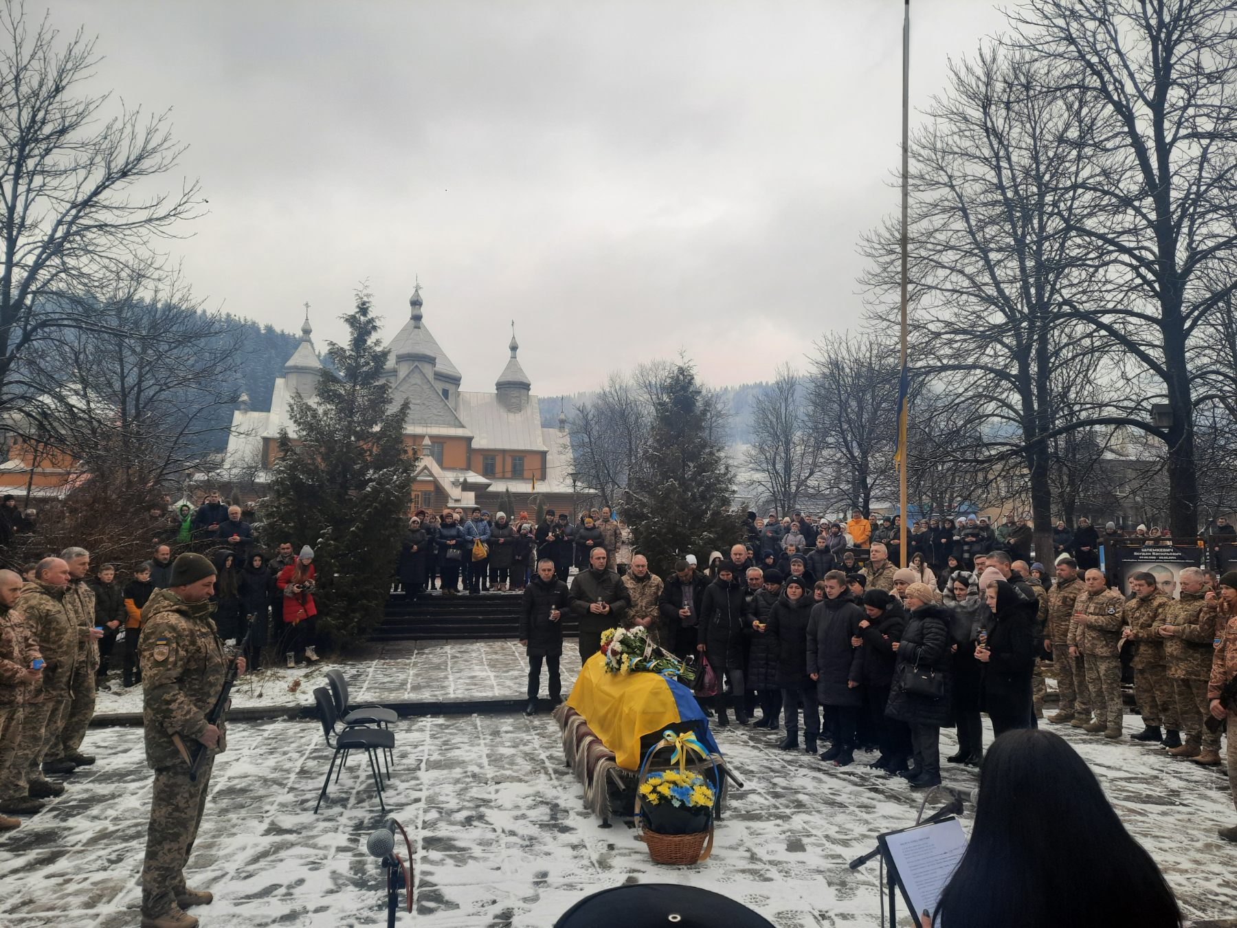 У п'ятницю, 15 грудня, у селищі Верховина зустріли кортеж із тілом полеглого захисника та провели панахиду біля стели Героїв Небесної Сотні.