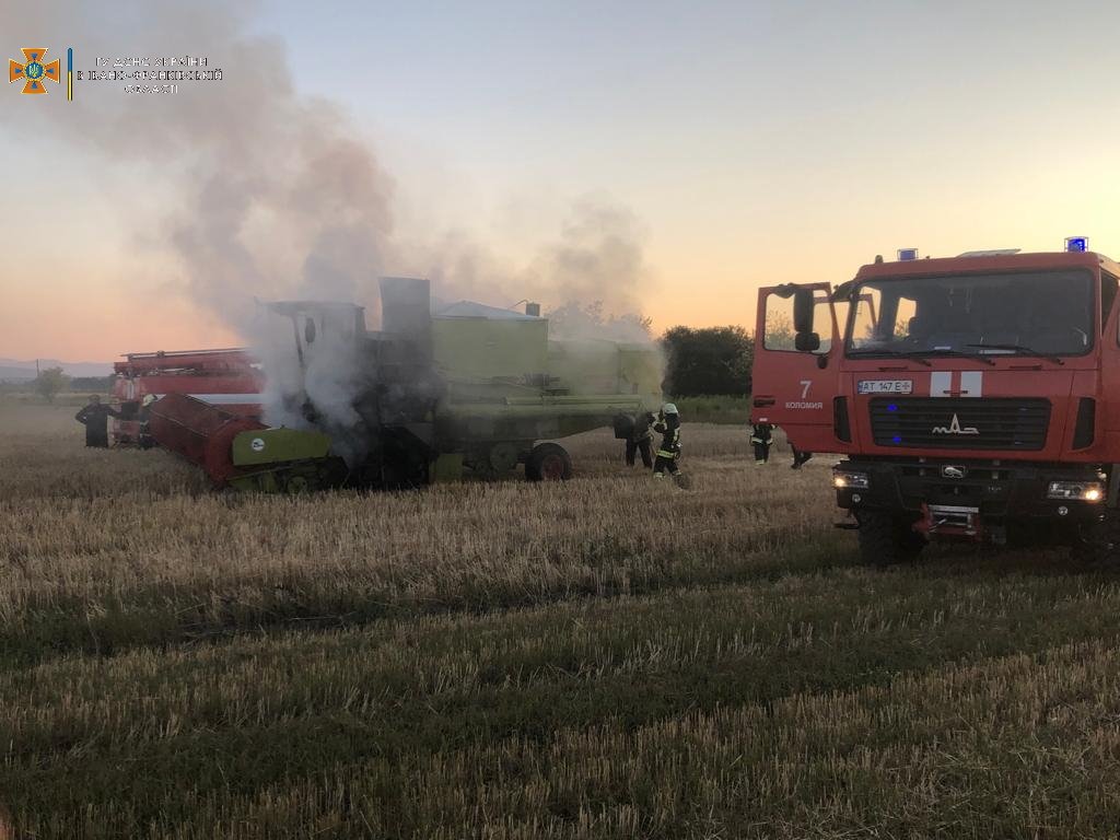 4 серпня о 20:12 на лінію 101 надійшло повідомлення про пожежу комбайна на полі в селі Кіданч Печеніжинської територіальної громади.