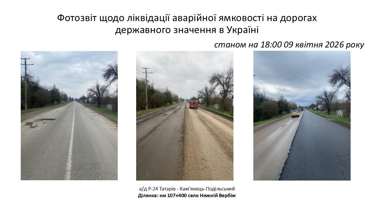 Також роботи тривають на дорозі Р-20 Тязів — Старі Кути в межах Городенківської громади. Там застосовують пневмоструменевий метод для ліквідації ямковості.