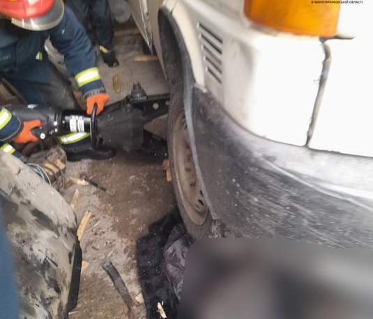 У неділю, 17 грудня, рятувальники Калущини виїжджали для проведення робіт з деблокування тіла чоловіка, що було притиснуте вантажним мікроавтобусом.