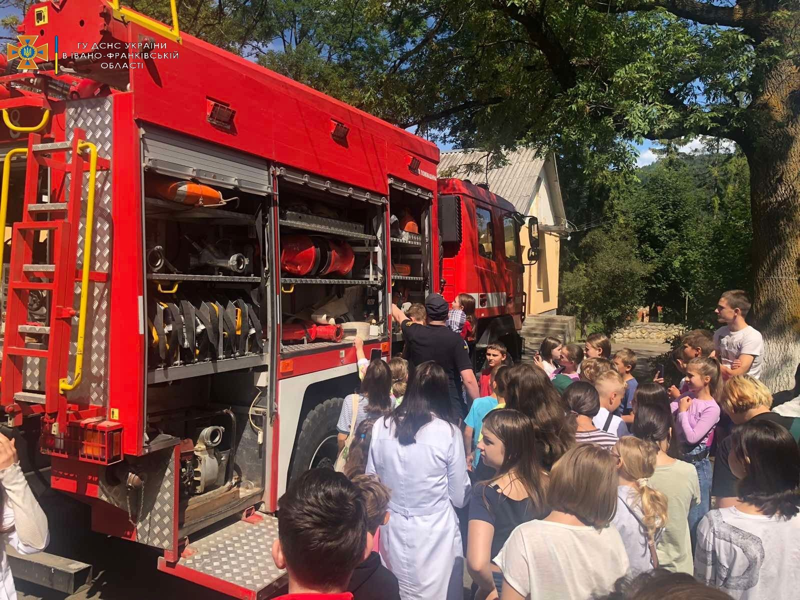 Вогнеборці ознайомили дітей з професією рятувальника. Найбільше захоплення у дітей викликало знайомство з пожежно-рятувальною технікою, перебуваючи в кабіні пожежного автомобіля чимала кількість охочих на мить відчули себе вогнеборцями.