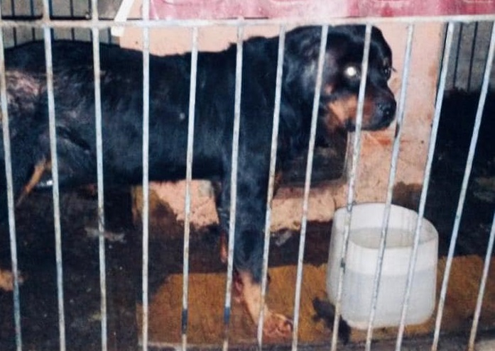 В цей час, правоохоронці помітили, як в їхню сторону біжить розлючений собака породи «Ротвейлер» та намагається накинутись на них. Поліцейські швидко зорієнтувалися у ситуації, зрозуміли, що розлючений собака біжить у наступ, тому здійснили декілька пострілів вгору. Тварина злякалась, опісля, поліцейські зуміли помістили собаку до вольєру складського приміщення.