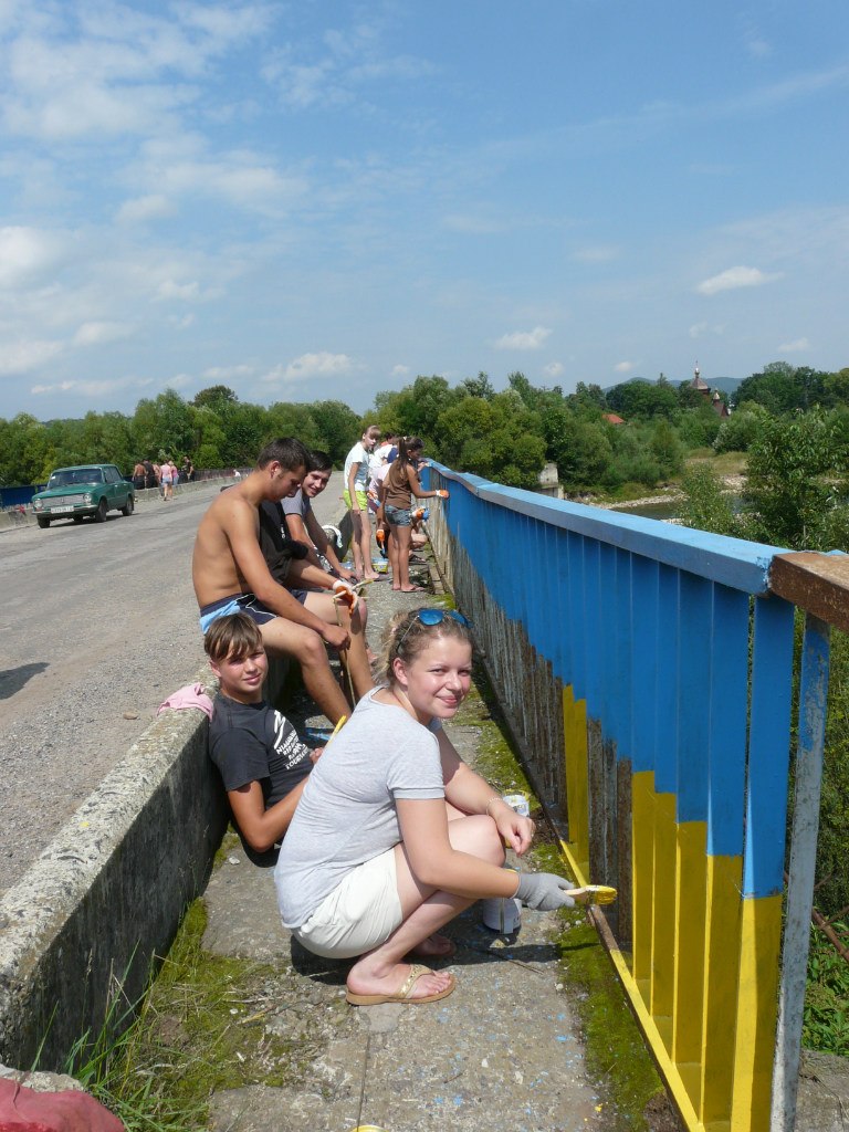 До акції «Міст єднання» долучилось понад 40 людей, в основному молодь. На те, щоб розфарбувати 100 метровий міст люди витратили близько 60 кг. фарби і три години часу.