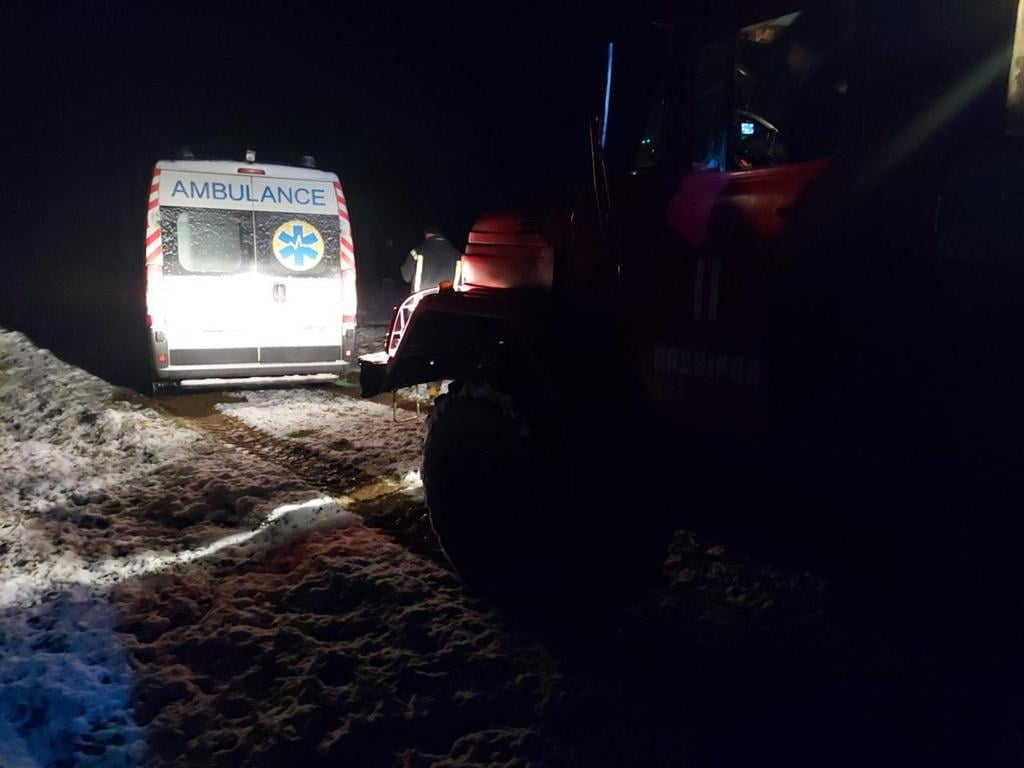 На автодорозі місцевого значення в селі Пнів Надвірнянського району працівникам ШМД знадобилась допомога, щоб витягнути автомобіль, який застряг, повертаючись з місця виклику.