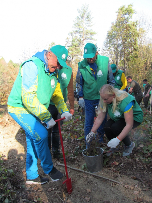 До висаджування дерев долучилися президент НОК України, Герой України Сергій Бубка, заступник голови ОДА Віталій Федорів, начальник обласного управління лісового та мисливського господарства Віктор Сахнюк, народний депутат Олександр Матусевич, голова НОК в області Мирослав Карабін, а також спортсмени - учасники олімпійських змагань.