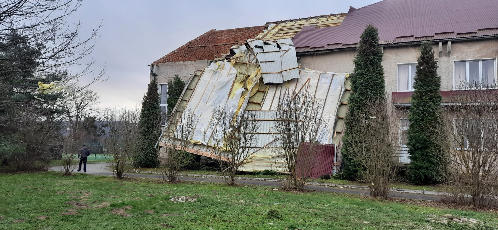 На Прикарпатті сильний вітер зірвав дах зі школи (ФОТО)