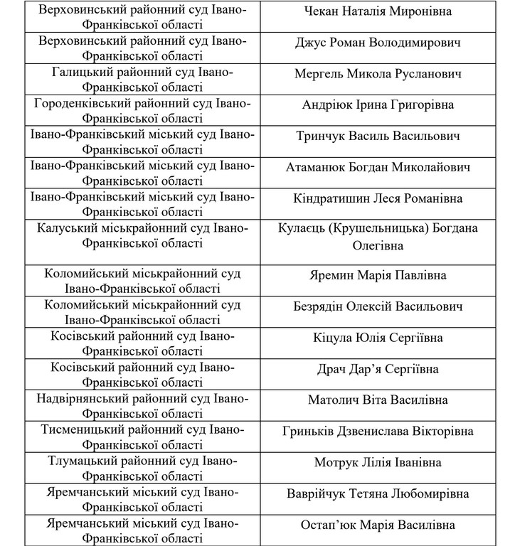 Рекомендації отримали і 17 претендентів на суддів у суди Івано-Франківської області.