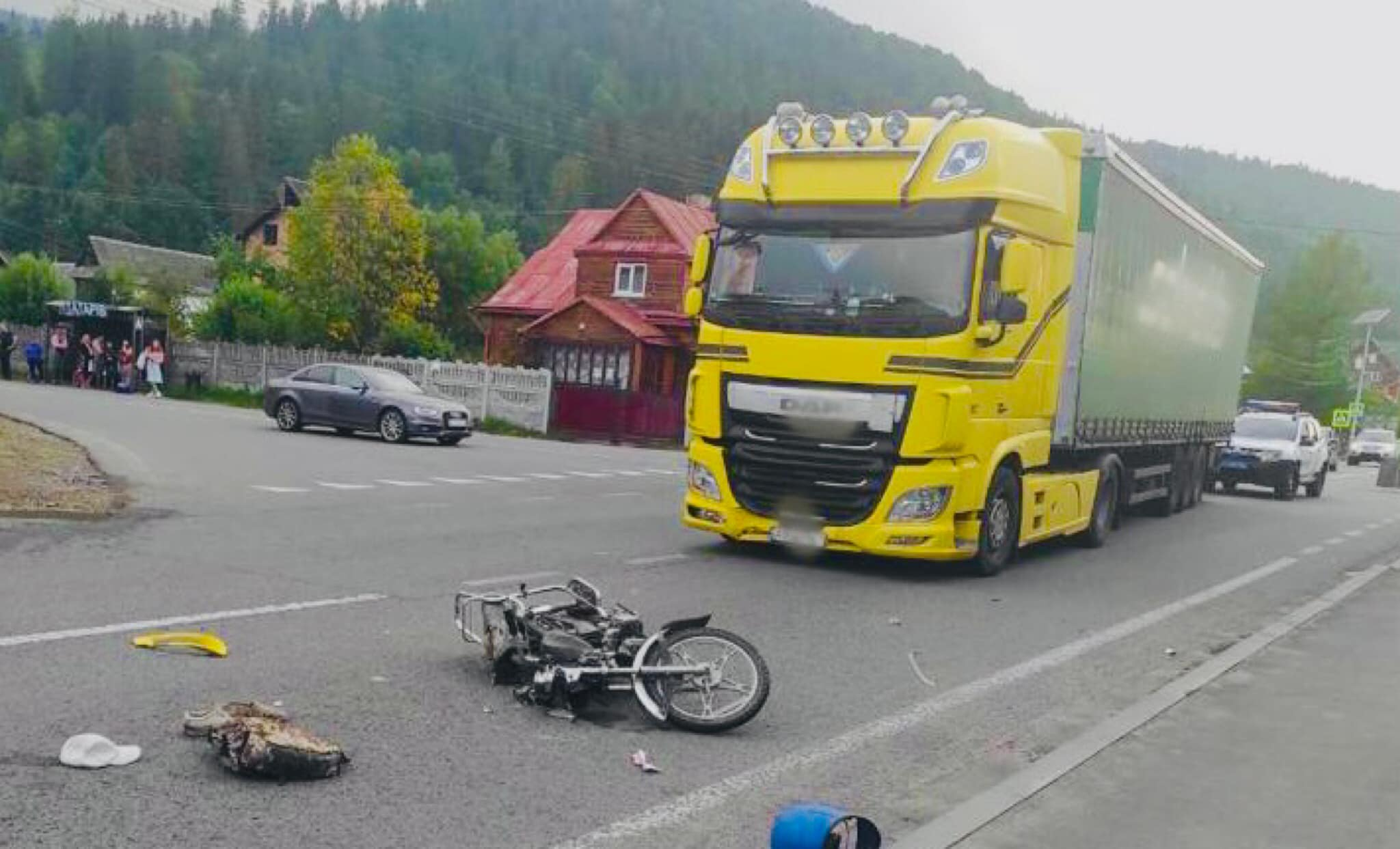 Внаслідок зіткнення вантажівки та мотоцикла, від отриманих травм керманич двоколісника загинув, а його пасажира госпіталізовано. Деталі дорожньо-транспортної пригоди встановлюють слідчі у рамках відкритого кримінального провадження.