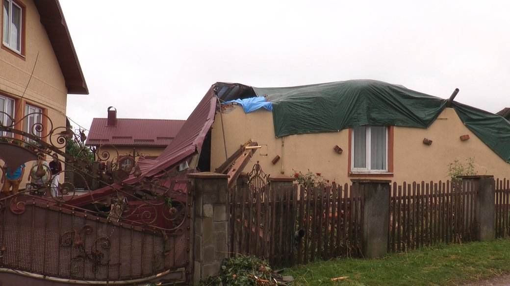 Через буревій частина даху з будинку Марії Франків упала на літню кухню, пошкодивши покрівлю. Інша його частина пролетіла понад 100 м і впала на сусідський будинок.