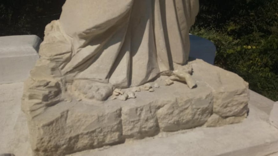У скульптури відламано правицю і половину книжки. Про це повідомив декан Галицький УГКЦ О.Ігор Броновський, передають "Вікна".