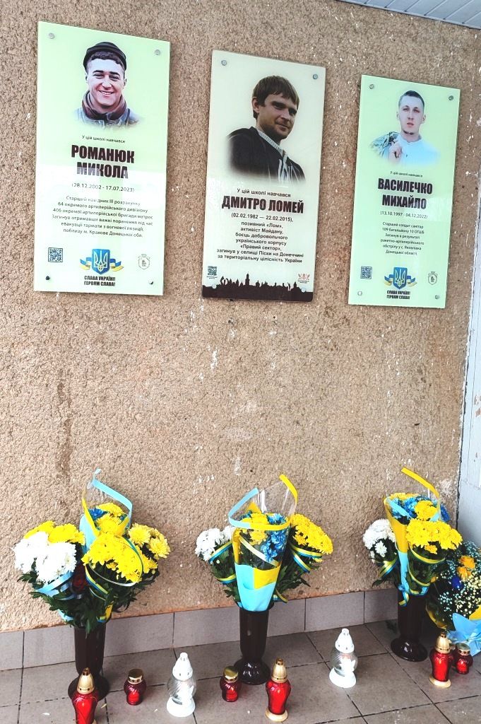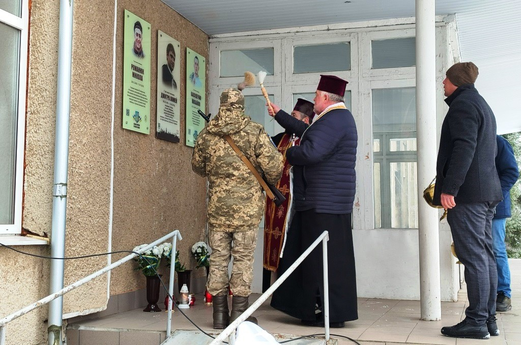 "Декани Тлумацькі о. Павло Дутчак (УГКЦ), о. Василь Стадник (ПЦУ) та священники помолилися за наших Героїв, відправили панахиду та освятили меморіальні дошки військовим.Своїми спогадами про Михайла Василечка та Миколу Романюка поділилися вчителі освітнього закладу Людмила Вовк та Лідія Ульянич", - зазначено у дописі.