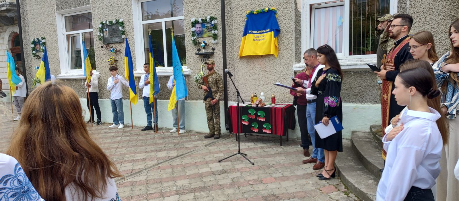 На фасаді Коломийського ліцею №8 відкрили меморіальну дошку захиснику Олексію Розвадовському.