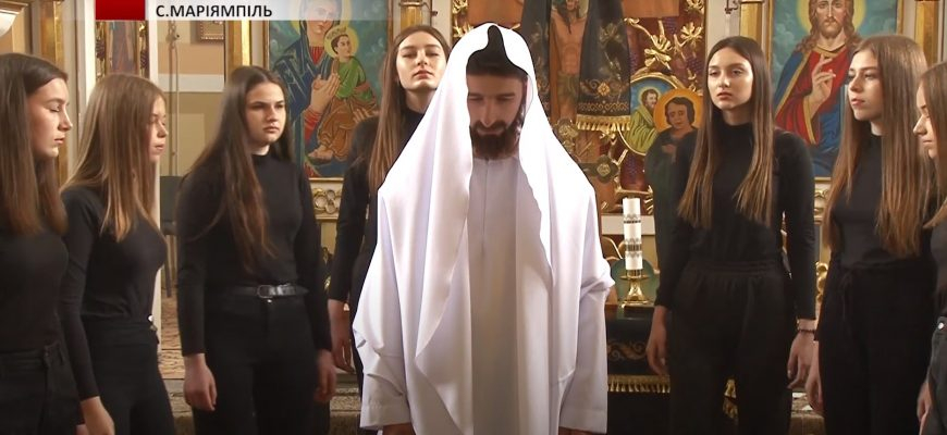Громадська організація «Українська молодь — Христові» з села Дубівці під музику і без жодного слова інсценізували Хресну дорогу в жанрі пантоміми.