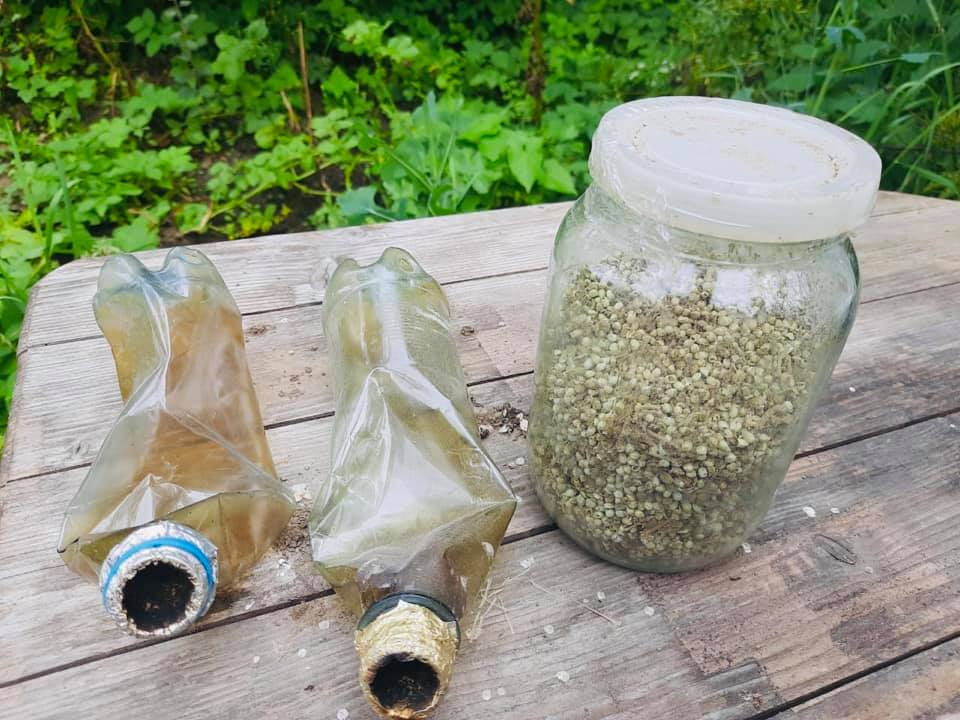 Окрім того, у житловому будинку вилучено чотири скляні банки та дві пластикові пляшки із вмістом наркотичного засобу «марихуана», вагою понад 500 грам, пристрої для вживання наркотичних засобів та інші заборонені речі.