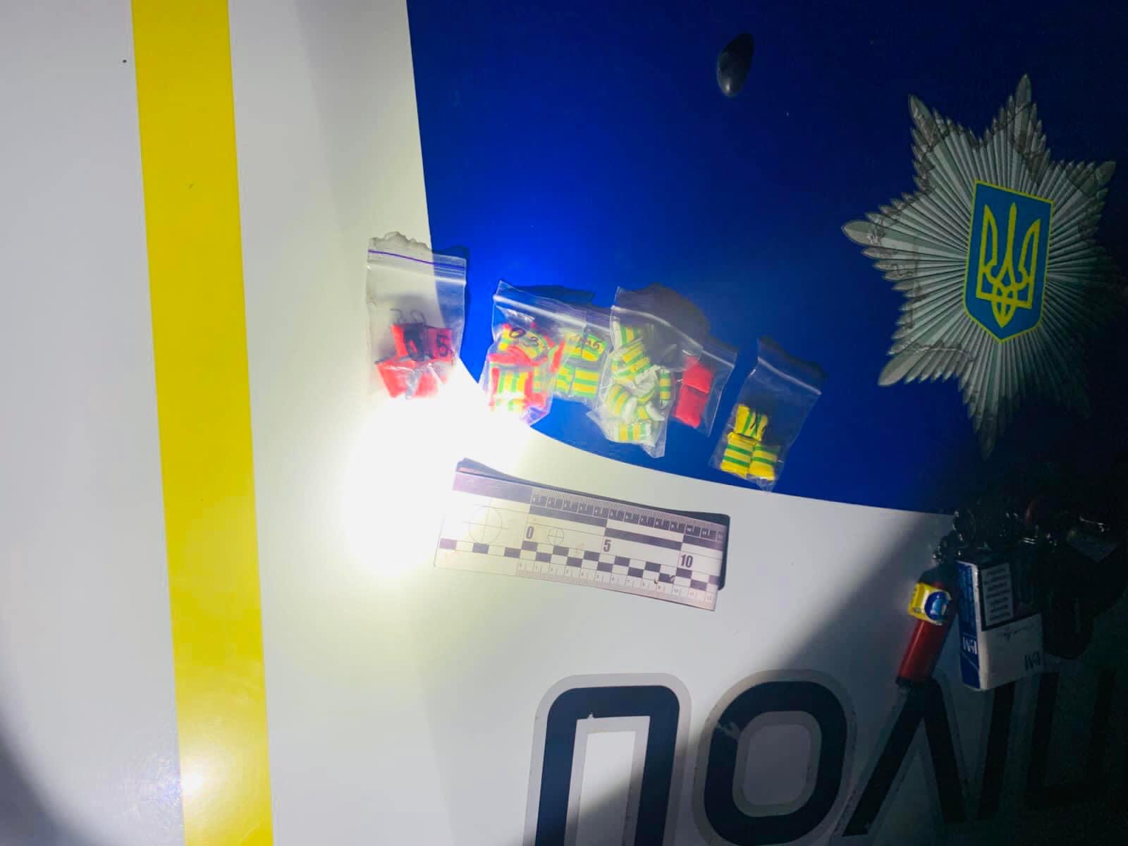 У ході проведення поверхневого огляду у зловмисників поліцейські вилучили понад 40 «закладок» із психотропною речовиною «PVP».