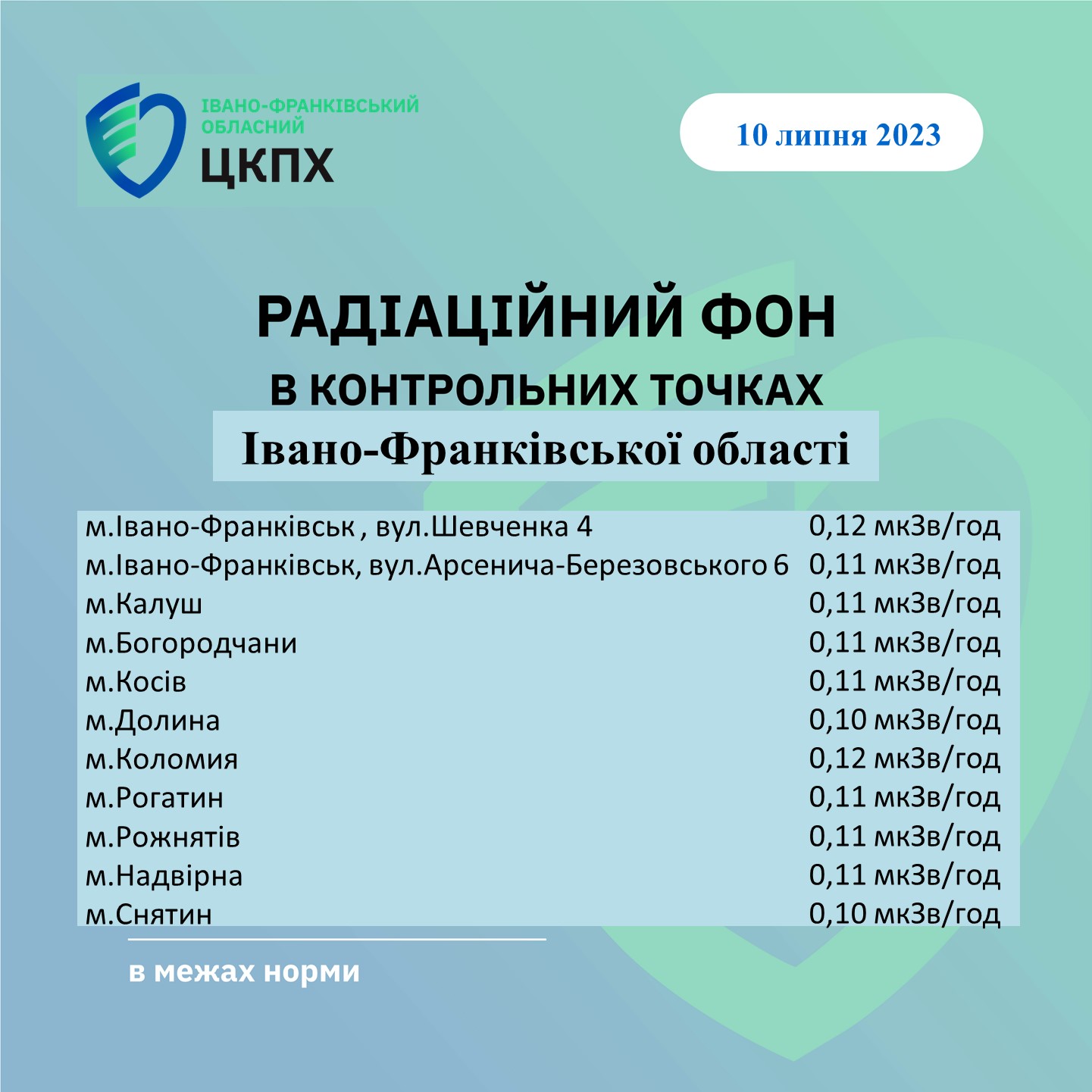 Тим часом найвищий радіаційний фон на Івано-Франківщині спостерігають в Івано-Франківську та Коломиї. Зокрема, він становить 0,12 мкЗв/год.