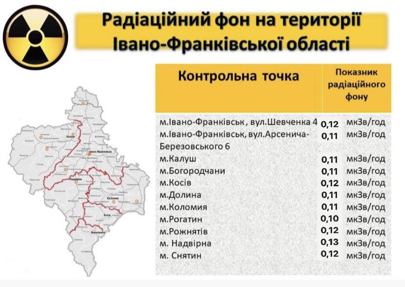 Тим часом найвищий радіаційний фон на Івано-Франківщині спостерігають у Надвірній. Зокрема, він становить 0,13 мкЗв/год.