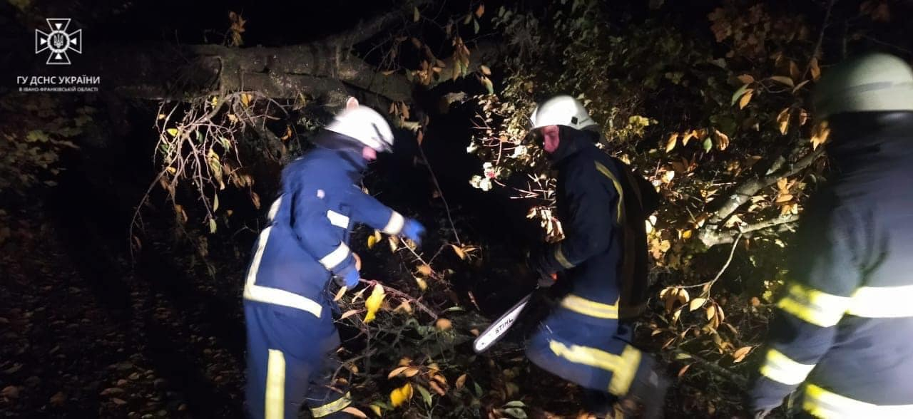 Впродовж ночі, рятувальники 12 разів залучалися на прибирання повалених внаслідок сильних поривів вітру дерев, які в більшості перекривали рух на автодорогах.