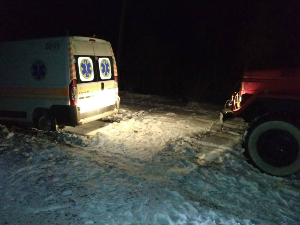 Сьогодні вночі працівники МНС буксирували автомобіль швидкої допомоги, який застряг у Болехові.