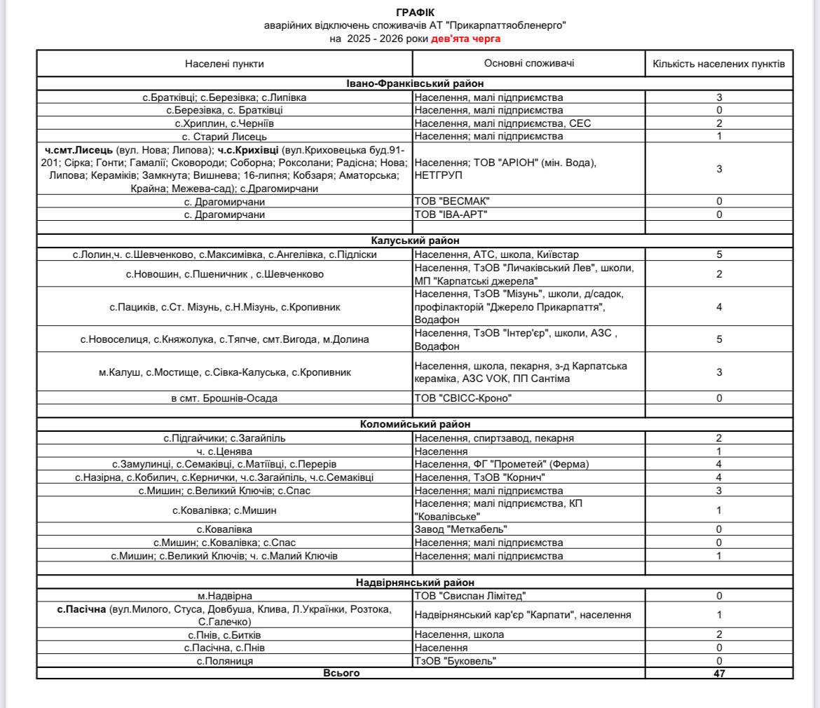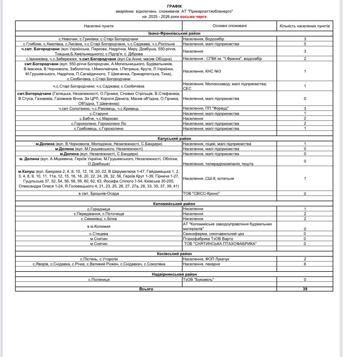 Додатково для споживачів буде введена 8 черга графіків аварійних вимкнень до окремої вказівки про скасування.
