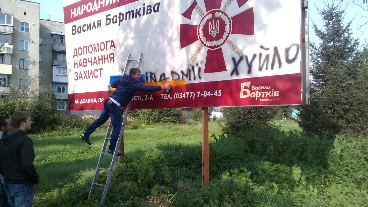 Але декому діяльність громадських активістів заважає. Однієї з ночей зловмисники попсували інформаційні біг-борди Народного Військового Штабу, які активісти розмістили для інформування мешканців краю про свою діяльність.