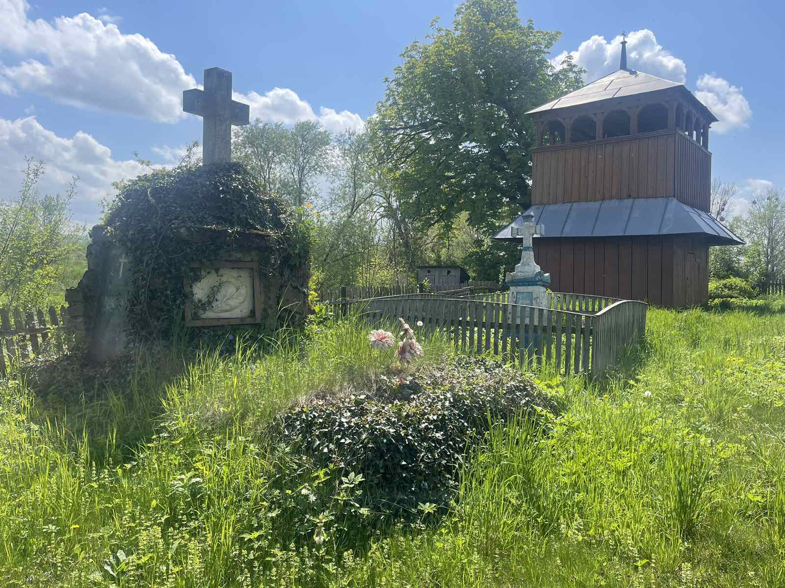 На подвір'ї розташована стара дерев'яна дзвіниця.
