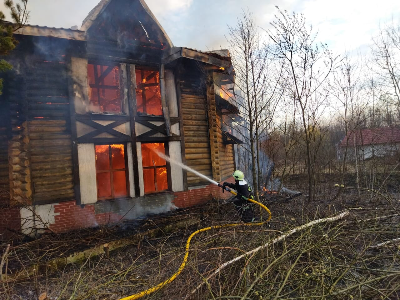 Як з'ясувалося, виникла пожежа двоповерхової дерев’яної недіючої будівлі, розміром орієнтовно 20х10м.
