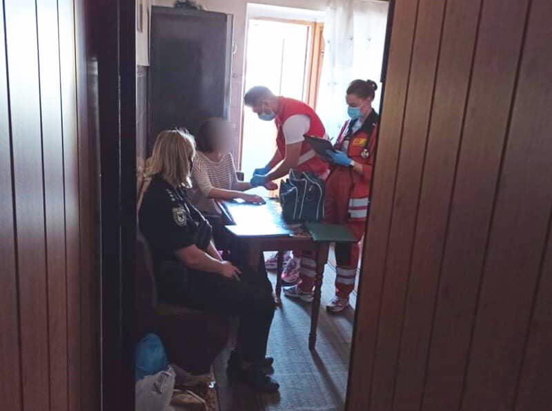 Дільничні швидко забрали ніж, який лежав поруч, після чого надали допомогу, заспокоїли її.