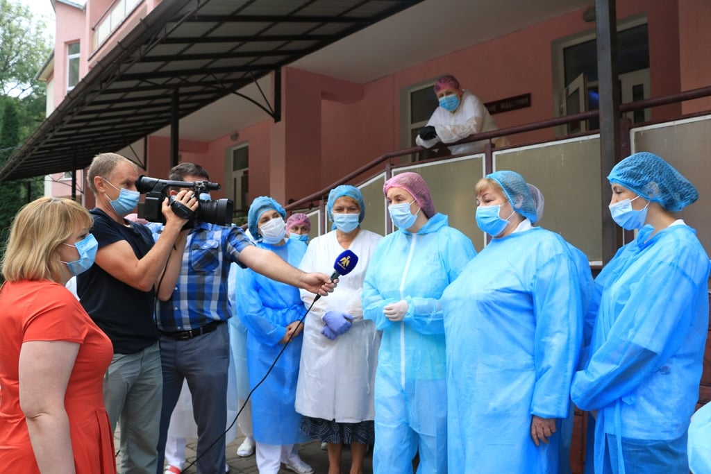 Насамперед заступниця міністра подякувала працівникам закладу за їхню роботу. Обласна інфекційна лікарня була першою на Прикарпатті, яка почала приймати пацієнтів із гострою респіраторною хворобою COVID-19.