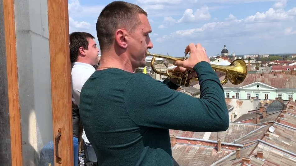 З початку повномасштабної війни музиканти вирішили виконувати Гімн України. Щоб виступити з вежі, виконавці долають декілька поверхів та горище.