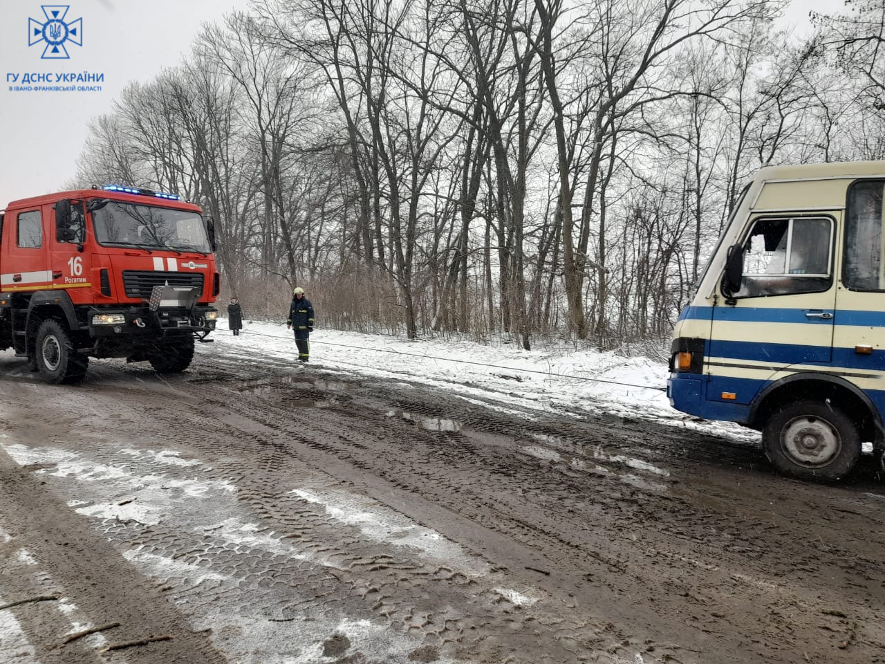 На Рогатинщині рятувальники відбуксирували рейсовий автобус з пасажирами (ФОТО)