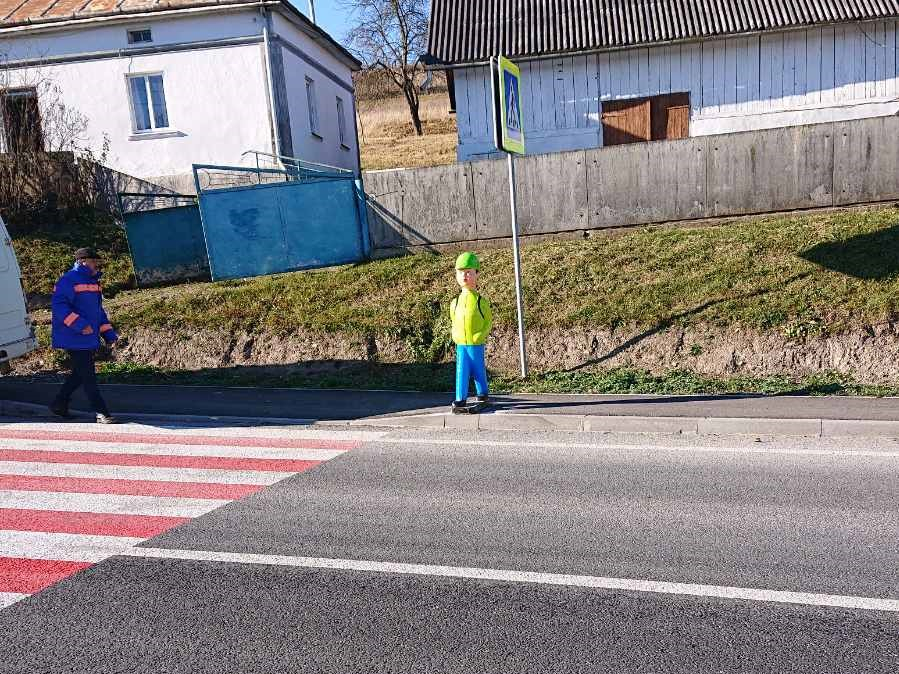 Стилізовані скульптури "хлопчик-пішохід" встановлені на ділянках дороги біля пішохідних переходів у селах Лопушня та Пуків Рогатинської МТГ.