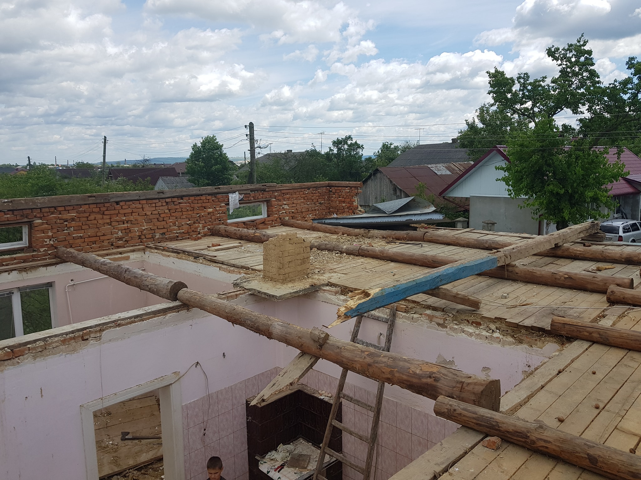 Буревій зніс покрівлю хати, а через проливний дощ і град одразу обвалилася стеля.