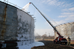 Під час пожежі травмувалися працівники мазутного господарства. Рятувальники за допомогою нош евакуюють потерпілих у безпечне місце та надають першу медичну допомогу. Керівник гасіння пожежі подає команду на проведення пінної атаки. Проводиться пінна атака. Пожежу ліквідовано. Для бійців МНС поступає команда – ”відбій”.
