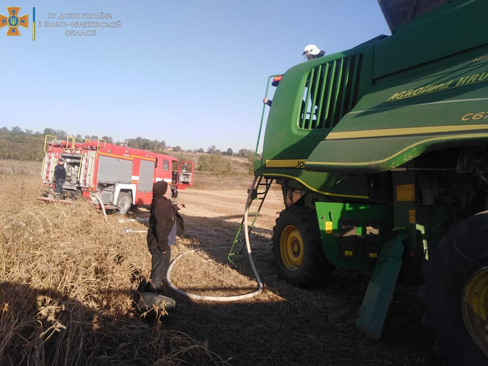 Як зазначається, пожежа сталася о 16.17 годині 8 жовтня. Вже за декілька хвилин після займання на місце прибули рятувальники, які погасили пожежу та не допустили поширення вогню на весь комбайн.