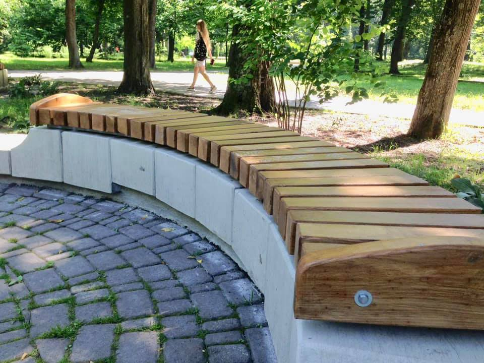 На лавочках повністю замінили дерев’яне покриття, а основи з натурального каменю відремонтували та відшліфували.