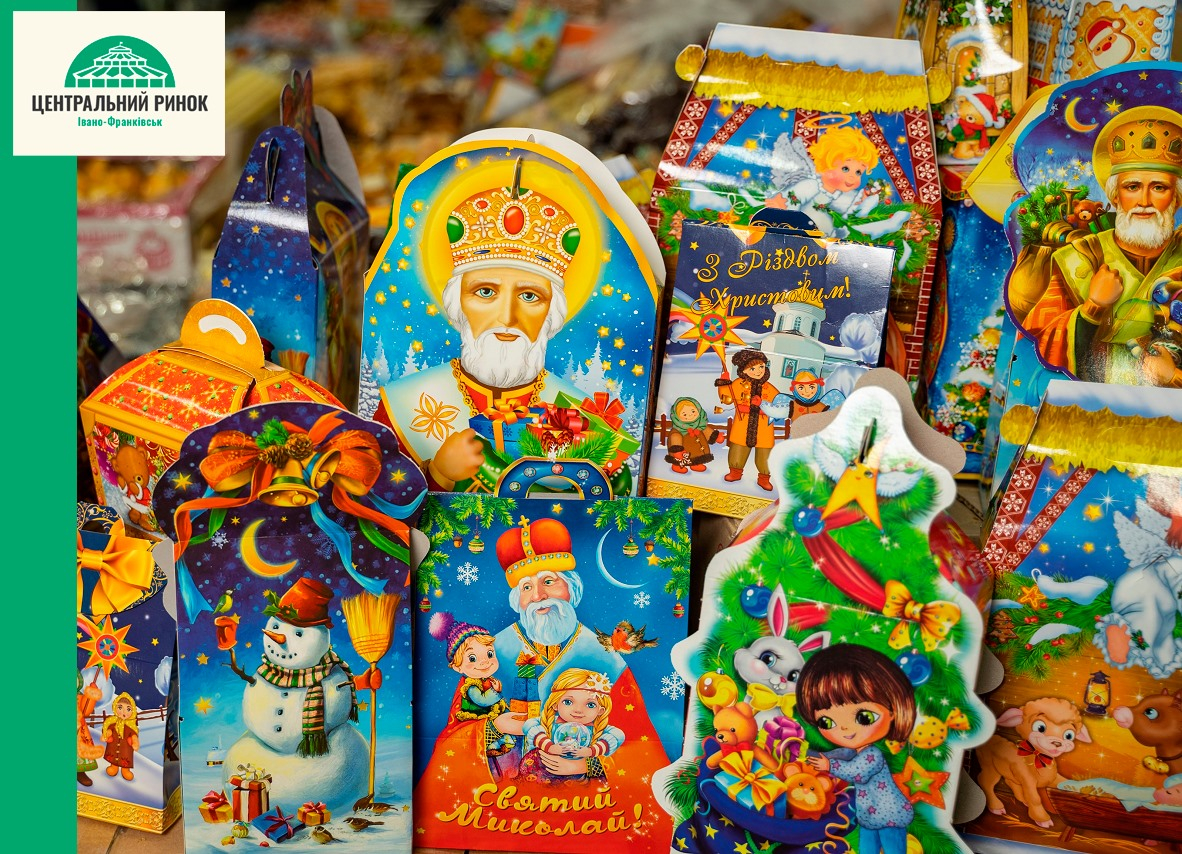 На прилавках – ласощі найвідоміших виробників на всі смаки. Шоколад, цукерки, печиво, різноманітні шоколадні фігурки. Подарункові набори – від 50 гривень. Для тих, хто хоче зібрати оригінальний, пропонують святкову торбинку чи коробочку.