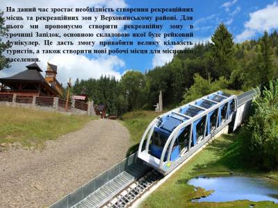 Одним з найоригінальніших бізнес-проектів є будівництво фунікулера селі Верхній Ясенів.