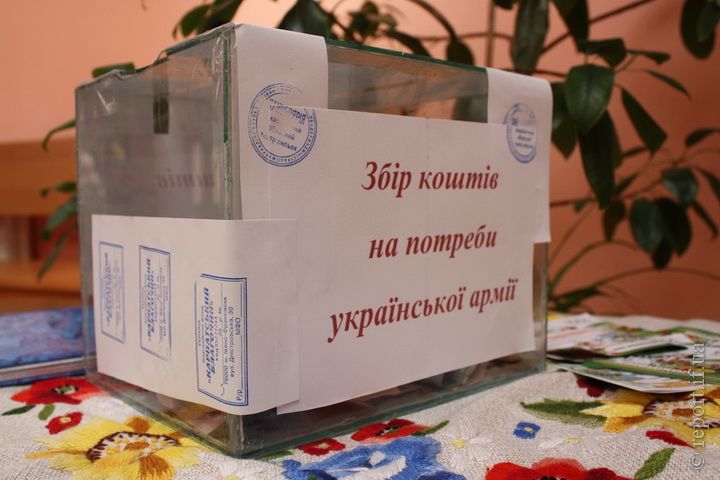 Також у холі театру знаходиться скринька від волонтерської організації для збору коштів військовим.