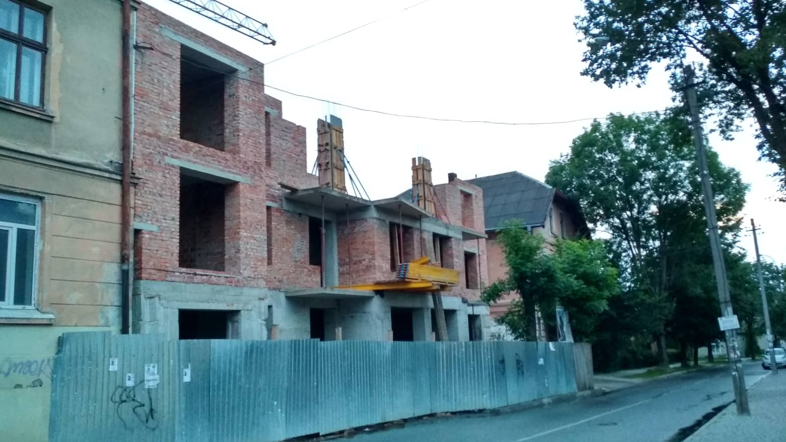 На фото можна побачити, що активно ведеться будівництво, станом на липень вже перекривають третій поверх.