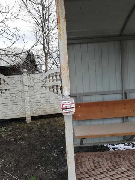 В селі Котиківка, що на Городенківщині, на всіх “тимчасових зупинках” громадського транспорту розмістили дозатори з антисептиком.