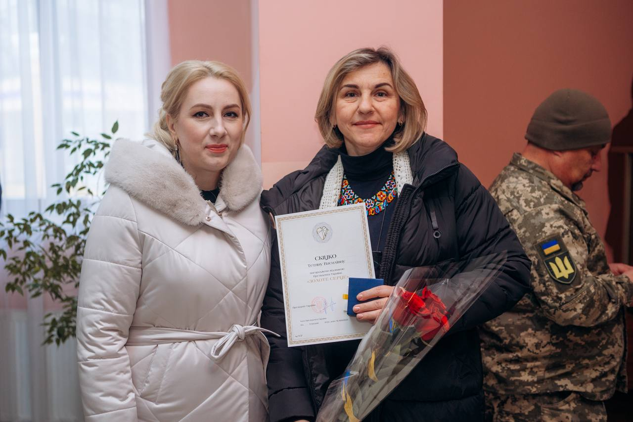 "Золотим серцем" відзначили й Христину Бригар-Урду - волонтерку громадської організації "Калуська міська філія союзу українок". А також президентську відзнаку голова ОВА вручила своїй землячці Тетяні Скіцко - голові громадської організації «Ліга українських жінок», яка всіляко допомагає та підсилює наших захисників.