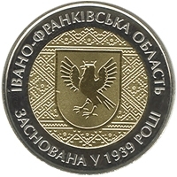 Нацбанк увів в обіг пятигривневу монету, присвячену 75-річчю створення Івано-Франківської області.