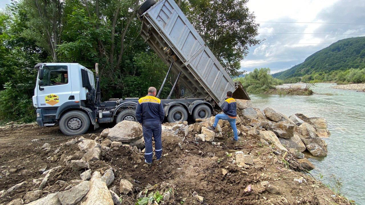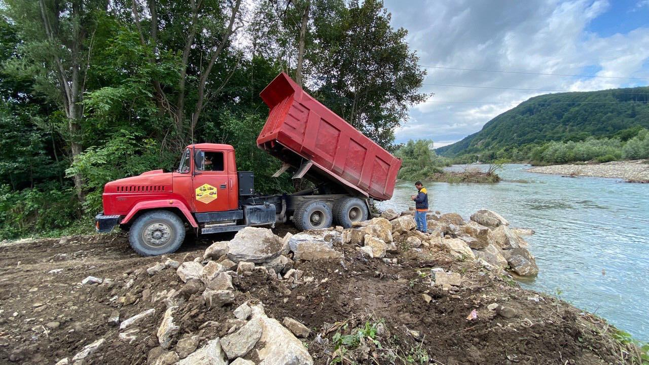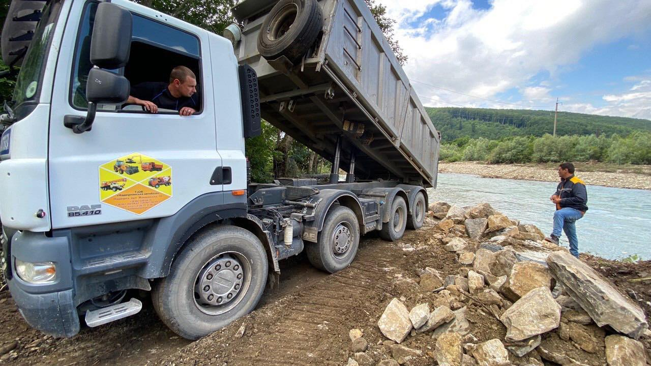 Надвірнянська автобаза відновлює дамбу на Бистриці, через руйнування якої без газу залишилось два села (ФОТО)